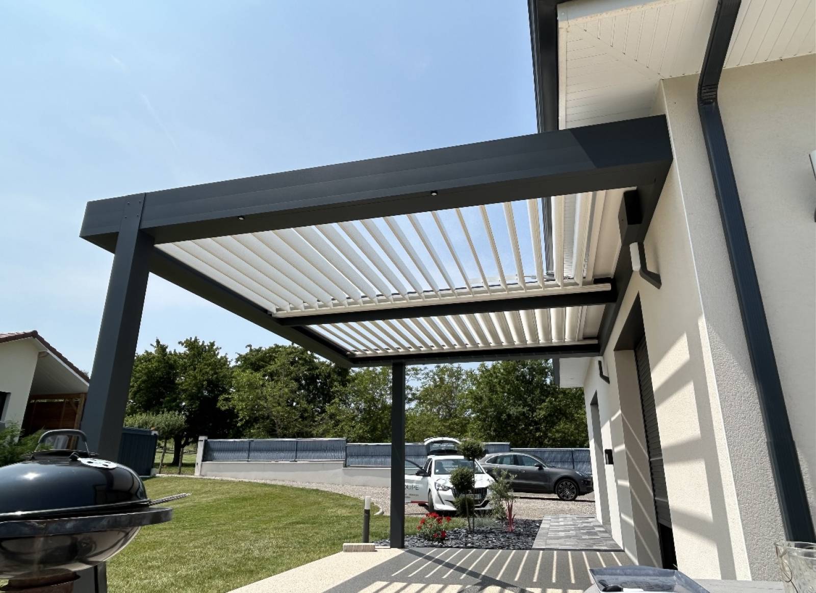 Panneaux latéraux en aluminium : renforcent l’intimité et le design architectural.